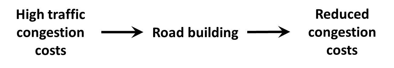 Figure 1: Simple linear view of causation in the relationship between road provision and traffic congestion